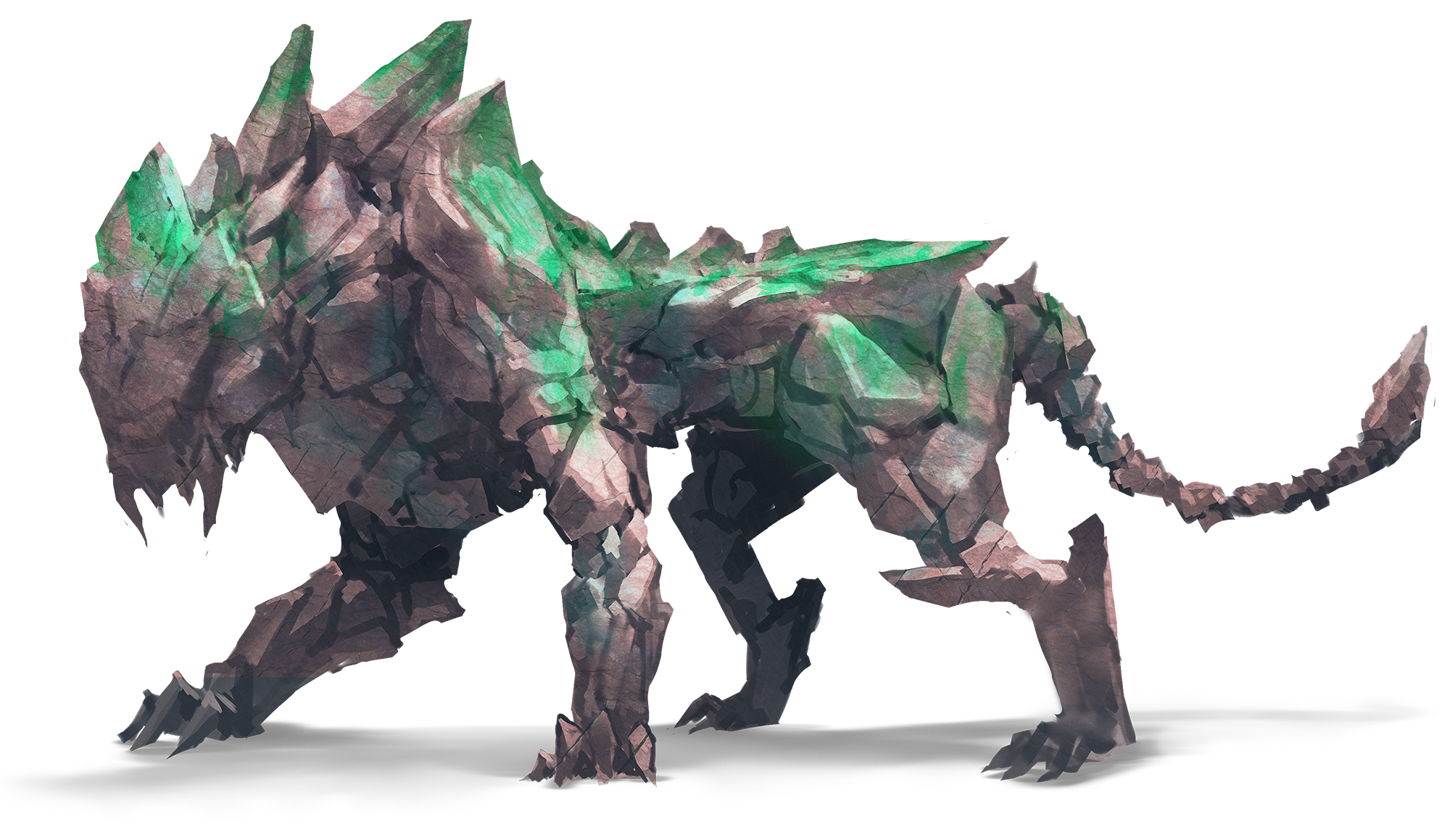 A prowling hunter, like a slinking mountain lion, with a slate-gray stone body.